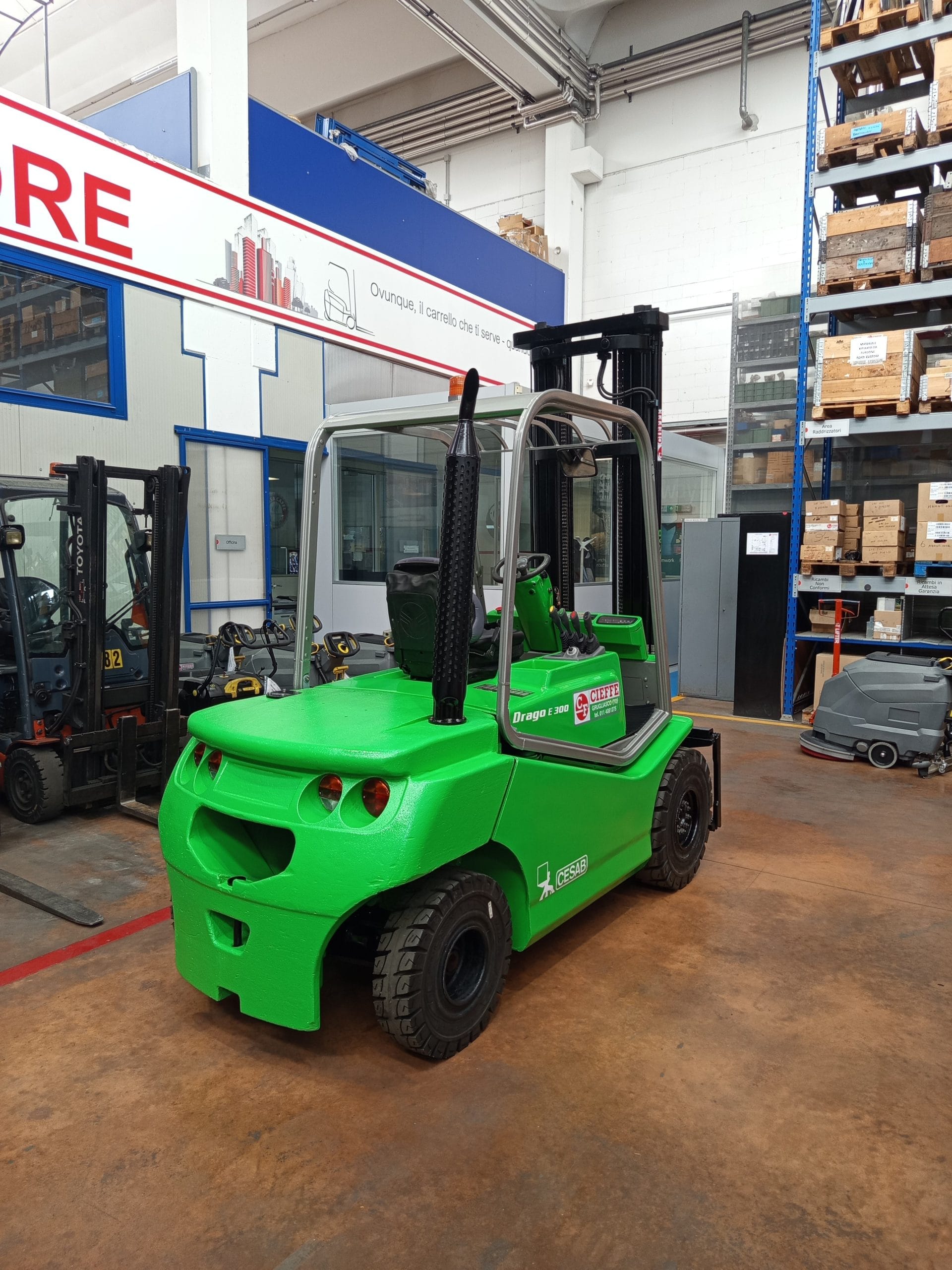 CARRELLO ELEVATORE ELETTRICO CESAB B630 rif. 614, carrello elevatore frontale elettrico 4 ruote marchio CESAB, mezzo ricondizionato, con montante duplex, batteria con capacità di carica minima del 60/70%